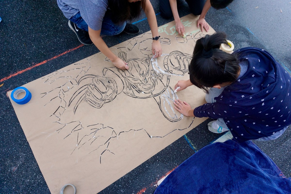 Published November 6, 2015 at 6000 × 4000 in Walker Wins Chalktoberfest! Next → Sophomore, Peggy Zhao, stenciling Photo credit: Daryl Hutchins
