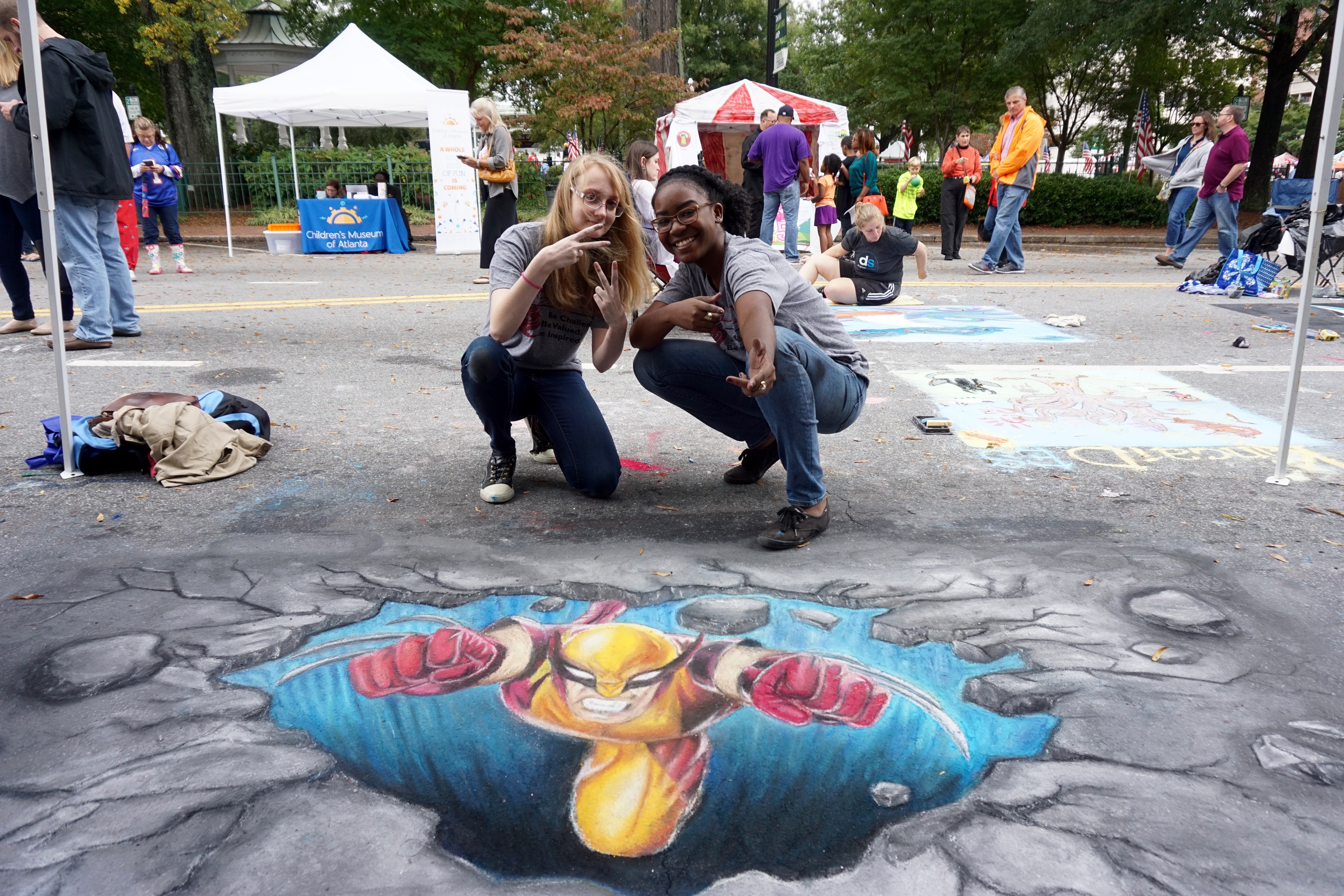 DSC05838 Published November 6, 2015 at 6000 × 4000 in Walker Wins Chalktoberfest! ← Previous Next → Ellen Roberts (11) and Danielle (12) posing with The Wolverine Photo credit: Daryl Hutchins