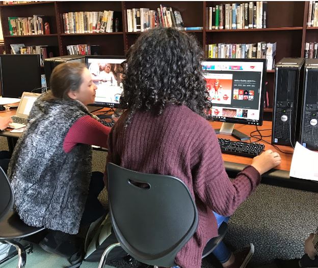 me Published January 24, 2018 at 624 × 527 in Hack Your Education ← Previous Next → Students Sarah Rusu (left) and Zoya Goel (right) work together in a different manner in searching things that could help in their school