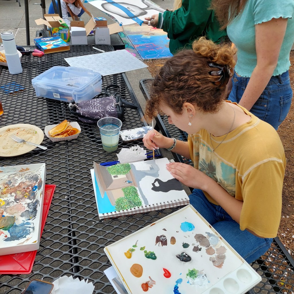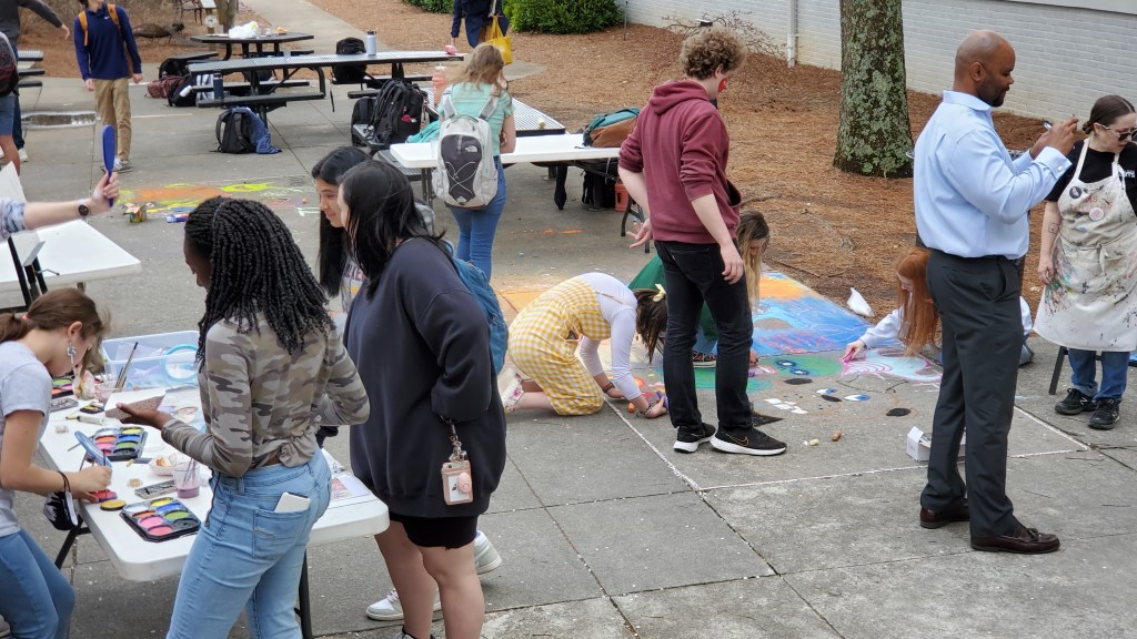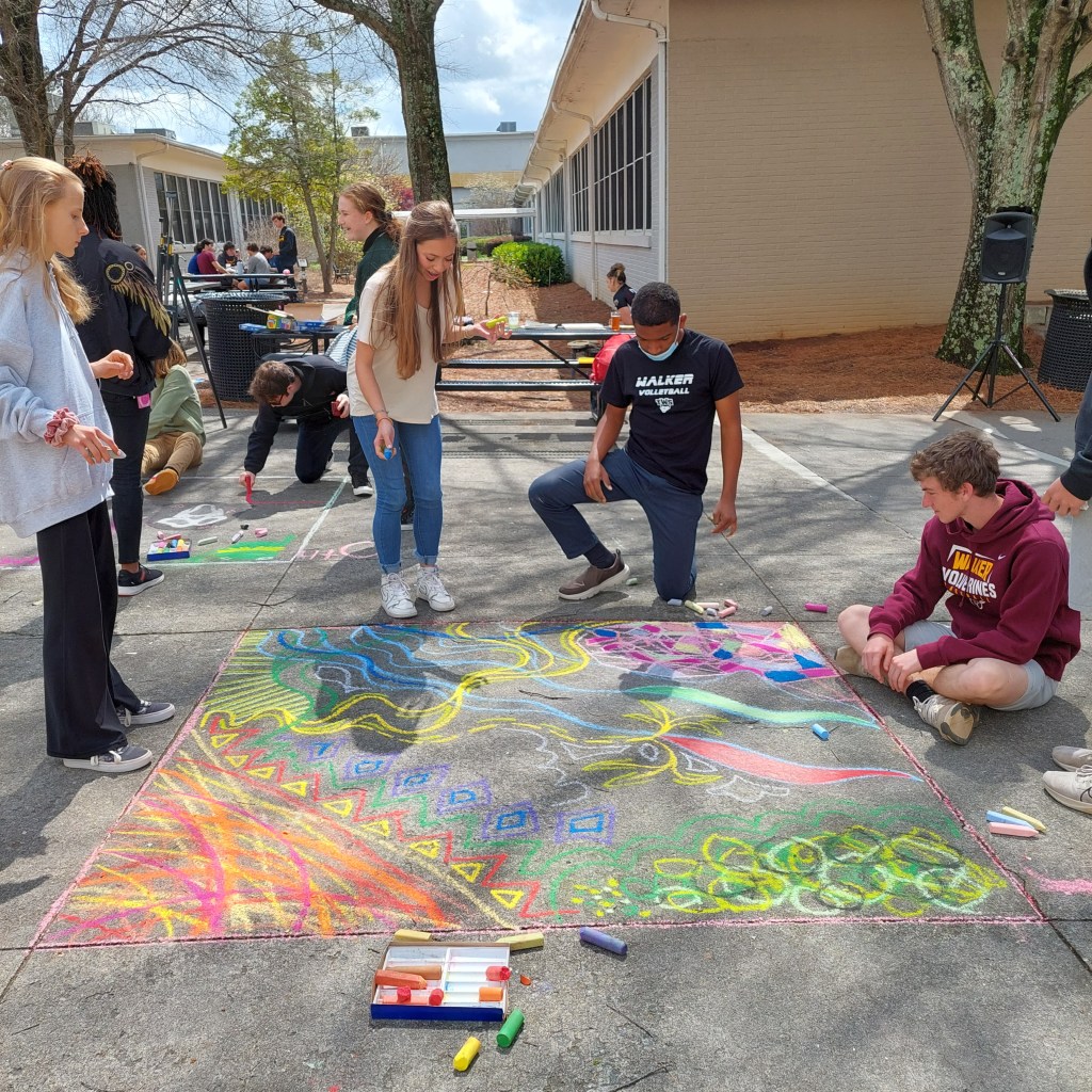 Today was the first Explore The Arts Day for The Walker School, and it was a great success. Ms. Thomas and her class students and art club worked together to set up this event in the courtyard during break. All of the Highschool came to draw and paint for their induvial grade. The grade with the best artwork wins donuts for their class.
