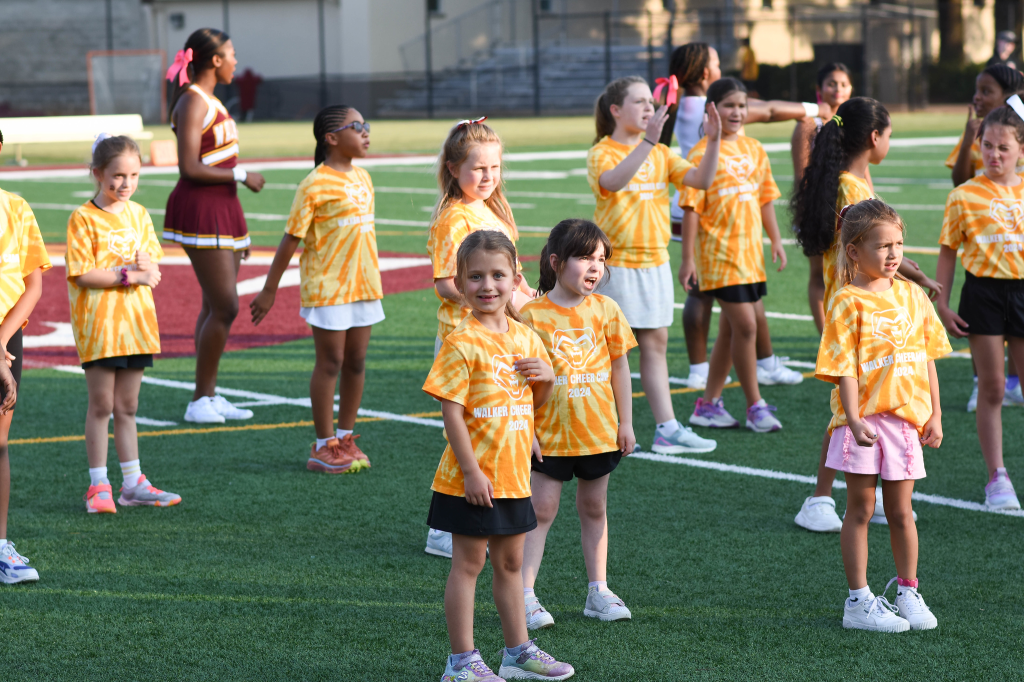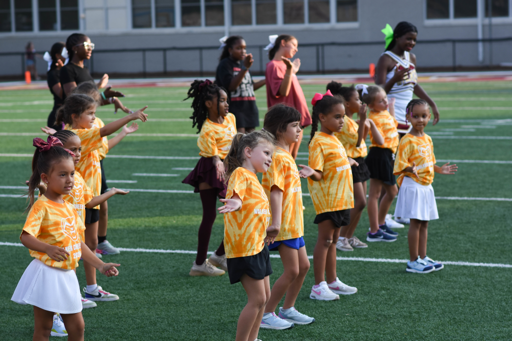 On August 16th, 2024, Kids Cheer Camp performed at the Varsity Football game! The young cheerleaders did a combination of a dance, two cheers, and a stunt. The routine was all before the game officially started, getting the parents and students excited. The Varsity Cheer team held a camp over the summer to teach these young cheerleaders their routine and how to be a cheerleader. The Varsity Cheerleaders look forward to this camp; Savannah Kraal says, “I love performing in front of the football boys over the summer since they don’t get to see them perform during the game. The kids always get nervous, but the football team cheers them on!” Addy Rath says, “I always have so much fun teaching the kids cheers and dances!”